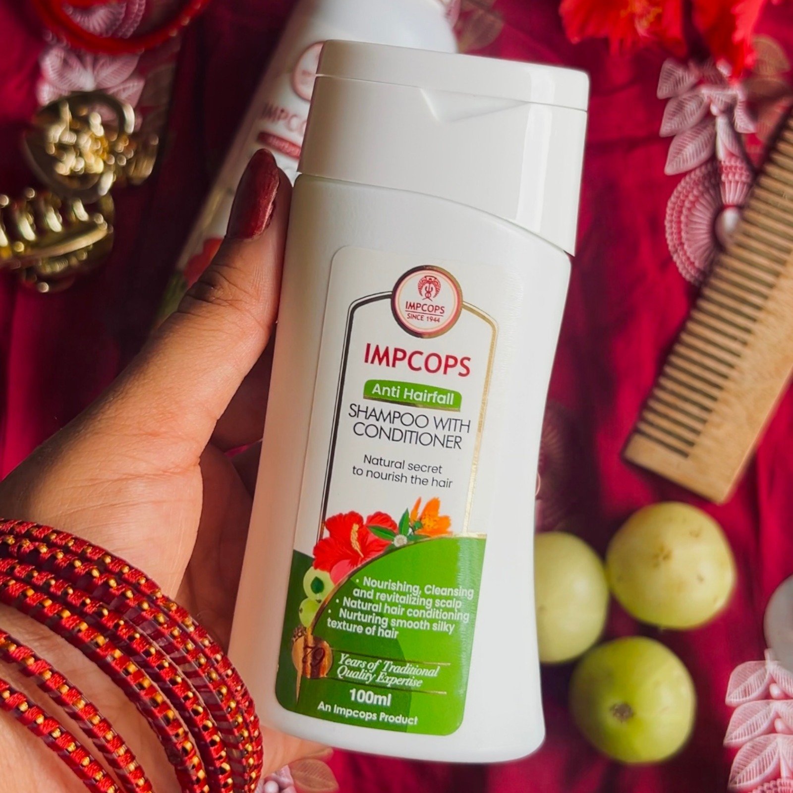 Benefits: IMPCOPS Anti Hair-fall Shampoo with conditioner, an amalgam of traditional Siddha herbs which nourishes the scalp and adds natural shine to hair.